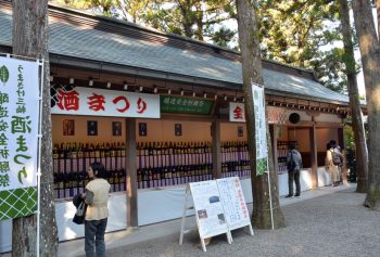 例年11月14日に、「酒の神様」「醸造の祖神」と仰がれるご神徳を称えて、新酒の「醸造安全祈願祭(酒まつり)」が行われます。また13日の午前9時頃から、拝殿・祈祷殿向拝の大杉玉(直径約1メートル50センチ、重さ約200キロ)が杉の緑の色も鮮やかに新しく掛け替えられます。また祭典に併せて南西廻廊において「全国銘酒展」(11月1日から11月14日まで)を開催。
