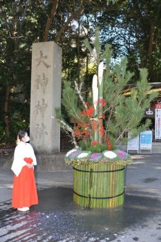 新しい年を目前に控えた12月13日、当神社二の鳥居前に奈良県花き植木農業協同組合より見事な大門松が奉納されます。